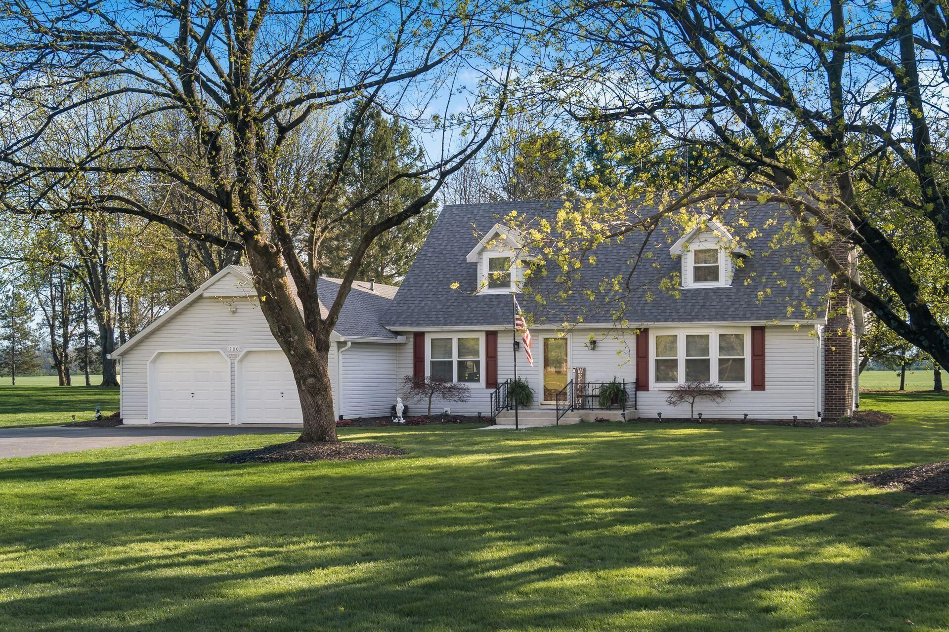 This spacious five-bedroom, 2½-bath home sits on just over an acre of beautifully treed and landscaped grounds across from the London Country Club. The vinyl-sided Cape Cod-style residence features an impressive vaulted entry foyer, a formal living room with a stone-hearth fireplace, and a formal dining room. The fully equipped eat-in kitchen includes Corian countertops, oak cabinetry, and ceramic tile flooring. A step-down, vaulted family room offers a wood-burning fireplace with a stove insert.The main level also includes a laundry room, a half bath, two bedrooms--one with both a walk-in and double closet--and a full bath with a walk-in shower. Upstairs, you'll find three additional bedrooms and a full bath with a cultured granite walk-in shower, along with a large walk-in storage closet in the hallway and additional attic storage behind a bedroom closet.Additional amenities include a two-car attached garage, a paved driveway with a turn-around, a welcoming front porch, a rear patio for outdoor enjoyment, and a storage shed for lawn and garden equipment.