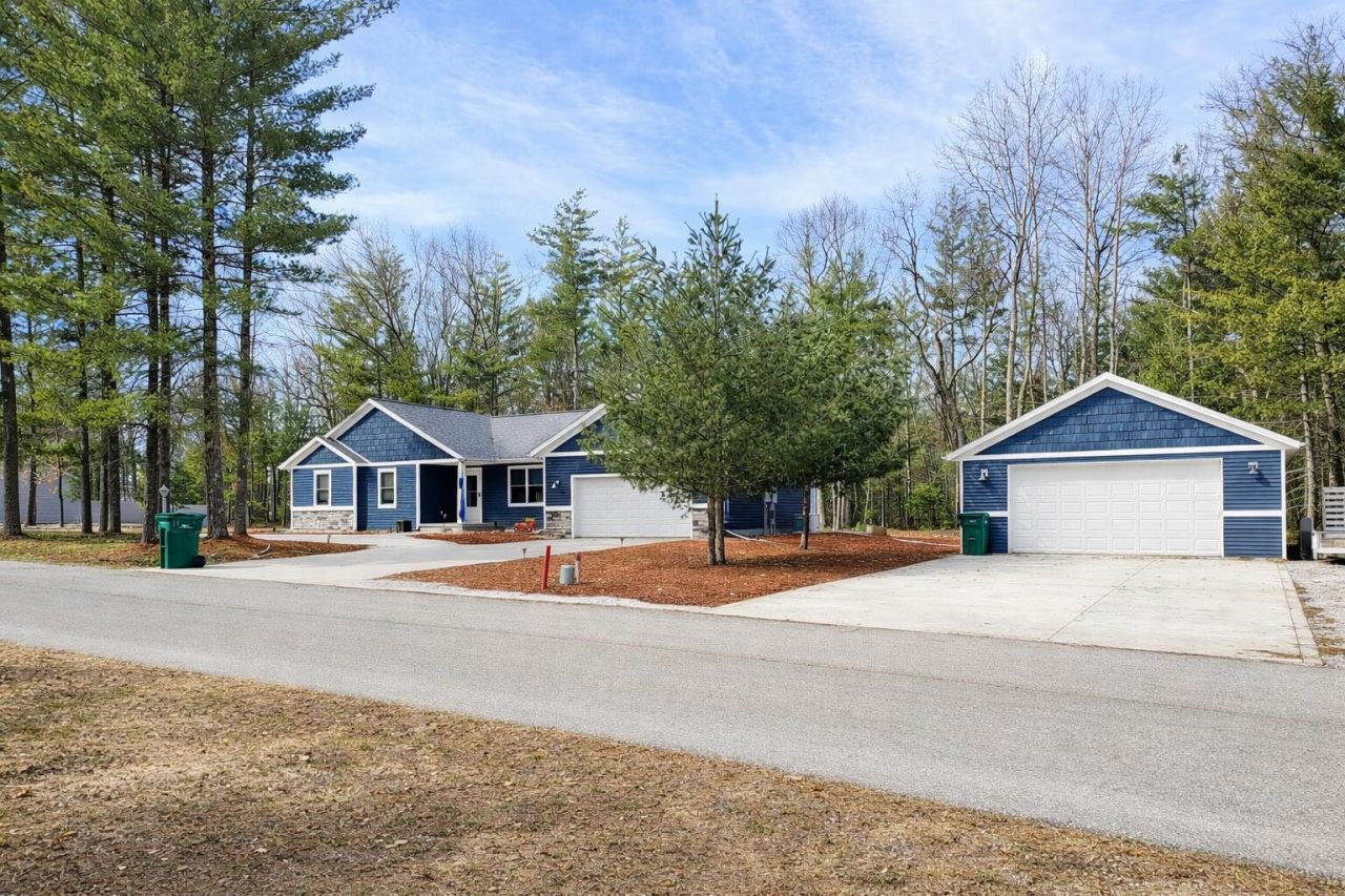Built in 2022, this beautiful home offers modern comfort on two lots on a quiet private street, while still being conveniently close to town and the golf course. The seller recently completed the finishing touches, adding several great upgrades including a stainless steel refrigerator, central air, a whole-house air cleaning system, and a whole-house generator that also powers the 36??24 pole barn. The pole barn is a standout feature, offering excellent space for storage, a workshop, or all your recreational toys. In addition, there is dedicated parking for an RV or trailer beside the garage, with a newly added stone drive providing a convenient and durable space for easy access and parking. The home features an open-concept kitchen, living, and dining area with a spacious island, perfect for entertaining. Step through the door wall to a 14??18 deck overlooking the private backyard, where you can relax and enjoy the peaceful setting and frequent wildlife. A wonderful opportunity to enjoy peaceful living with modern upgrades in a great location.