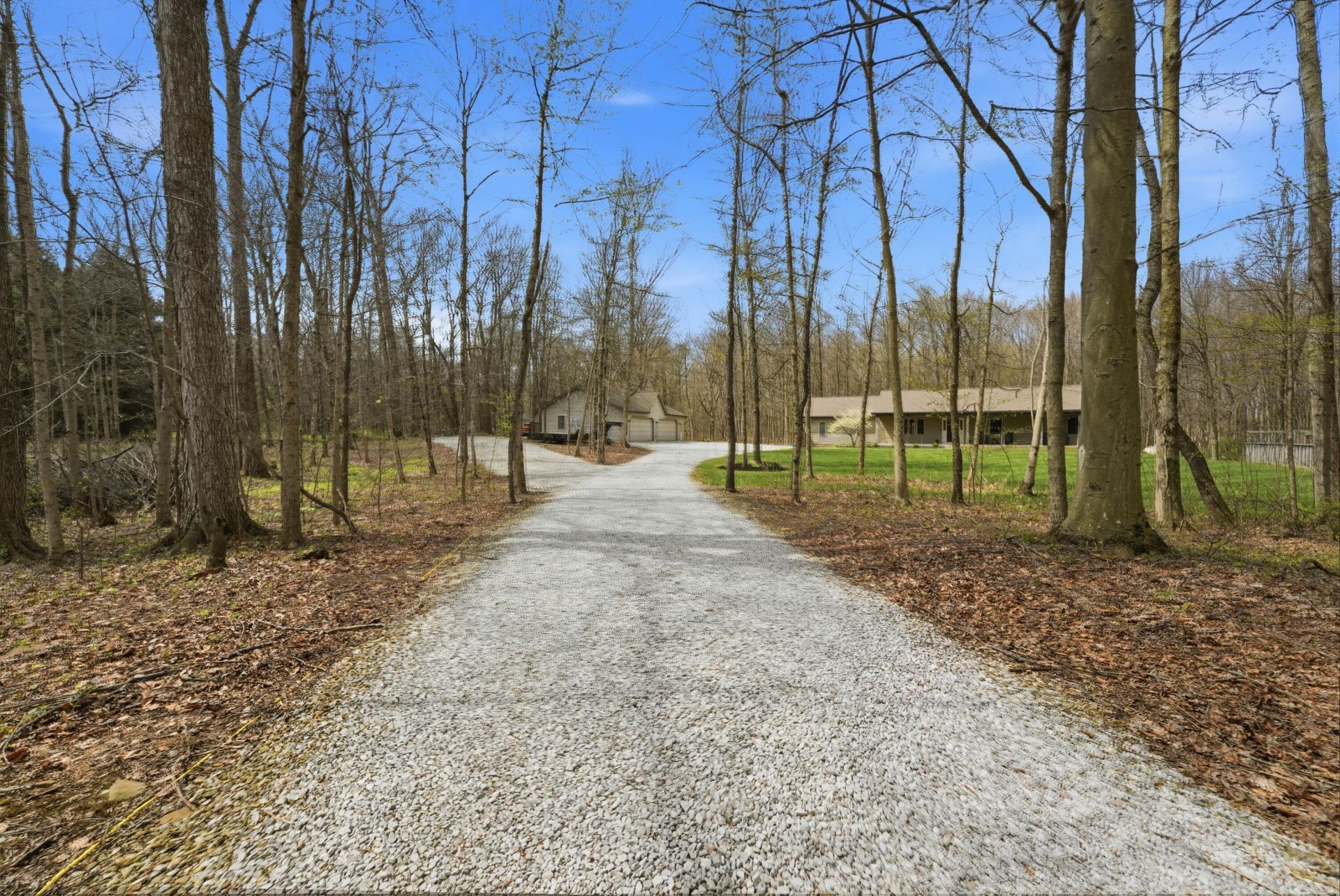 This is a beautiful ranch home nestled on 3.39 acres of wooded land in Granville, Ohio! This open-concept home features three large bedrooms and two full bathrooms. It has been meticulously updated and maintained, featuring hardwood flooring, stainless steel appliances, and quartz countertops. The primary suite includes built-in cabinets, a built-in king bed, and three closets, including a walk-in. The great room and eat-in area are enhanced by built-in shelving with live-edge accents.Additional features include:- Main-level laundry with a stackable washer and dryer included.- Pella windows- A full poured wall basement.- An expansive front porch running the length of the house and a large back deck.- An enclosed raised-bed planter.- An attached two-car garage with pebble-tech flooring, including a workbench and cabinet.- A 36' x 50' heated detached garage, ideal for hobbies, car enthusiasts, vehicle storage, etc...- Please see improvement list in the documents.This home offers a serene wooded setting just minutes from Granville, Pataskala, Newark, and New Albany.