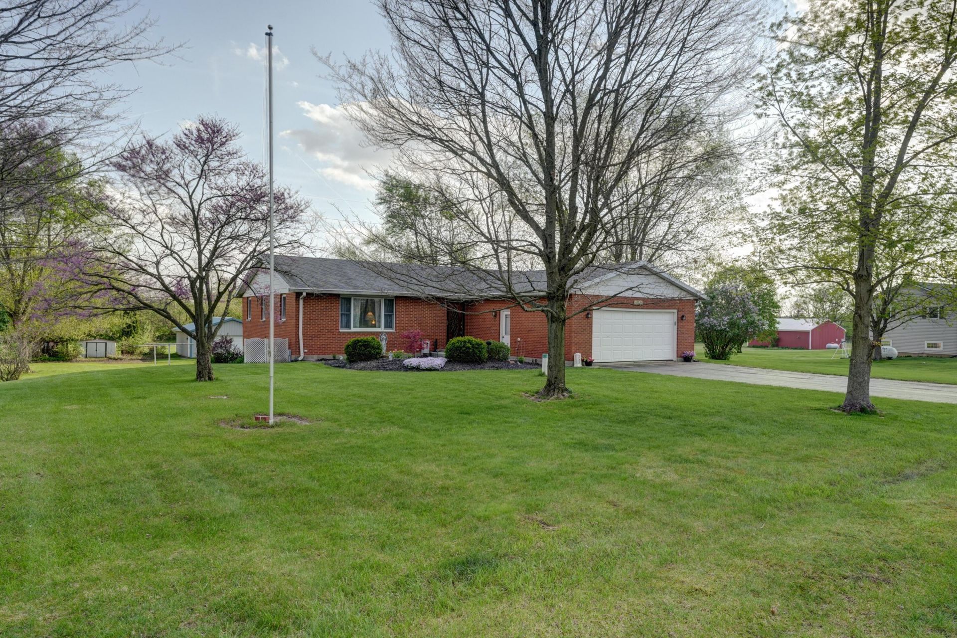 Discover the perfect blend of comfort, space, and versatility in this well-maintained brick home set on nearly one acre of peaceful surroundings. Designed for both everyday living and entertaining, the main level offers a welcoming living room, an updated kitchen featuring soft-close cabinetry, pull-out corner storage, and included appliances (range, refrigerator, microwave, dishwasher), plus a flexible dining/family room combination.The home includes three bedrooms and 2.5 baths, providing ample space for family and guests. The walk-out lower level significantly expands your living options with a spacious family room, full bath with shower, laundry area, and multiple bonus rooms ideal for hobbies, crafts, or a home office. Double doors lead to a covered patio, perfect for relaxing or entertaining outdoors.Recent updates include a new furnace and central air system in 22. Additional highlights include an attached two-car insulated, drywalled, and painted garage and an impressive 24x32 insulated outbuilding (built 2017) with concrete floors, ample lighting, and 220 electric--perfect for a workshop, studio, or extra storage.Enjoy outdoor living on the large patio overlooking the serene setting, with a walking trail just behind the property. Conveniently located just minutes from Greenville, this property offers a rare combination of privacy and accessibility.Information is deemed reliable but not guaranteed. Data sourced from seller, Darke County Auditor, and GIS. Room sizes are approximate; buyers should verify all information.
