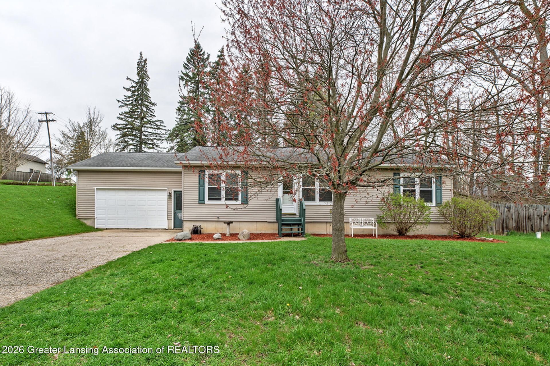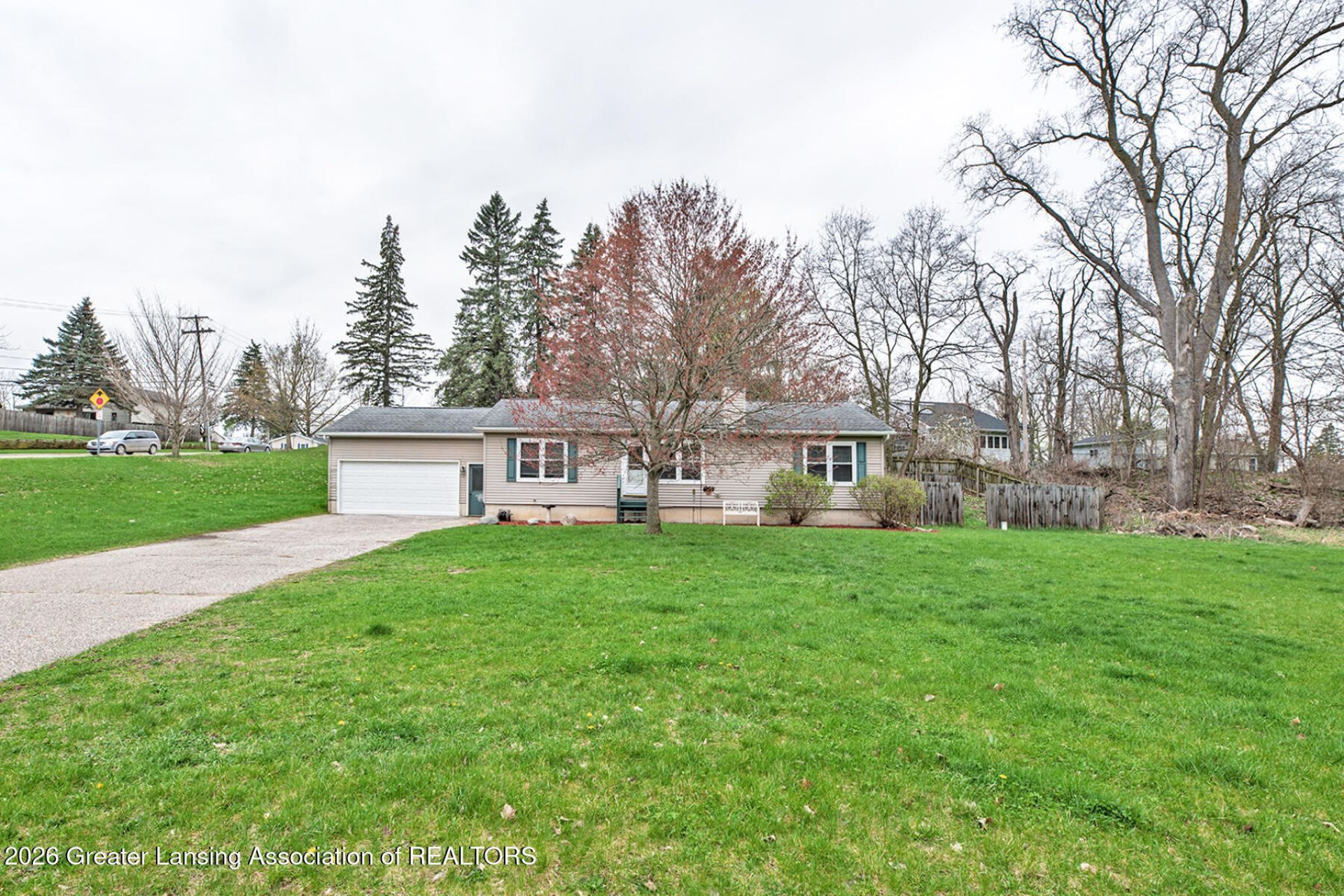 Welcome to this Sharp ranch on a nice corner lot. Living room with an attractive fireplace and a large window that makes it light and bright. Great kitchen with lots of cabinetry. All appliances remain with the home. Some newer ones. Convenient first-floor laundry and mudroom area. Lovely dining room with a slider leading to the fenced backyard. Perfect for relaxing and entertaining. Awesome primary suite with a full bathroom. Two other generous-sized bedrooms serviced by another full bath. Wonderful lower level with a spacious Family/Rec room. Fourth bedroom with an egress window. Total living space is 2,372 square feet, including the lower level. Some newer paint. Newer Garage door opener. Lots of storage. Close to Downtown DeWitt and the Park.