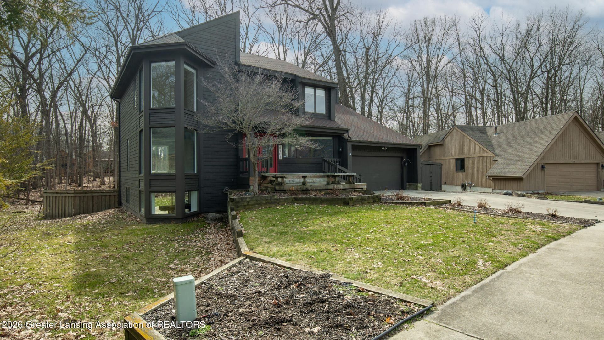 Welcome to 6101 Oakpark Drive in Haslett, a striking contemporary home offering nearly 3,500 square feet of finished living space in one of Meridian Townships most desirable neighborhoods, just minutes from Lake Lansing and within the Haslett School District. This spacious home features 4 bedrooms, 2 full baths, and 2 half baths, with all bedrooms thoughtfully located on the second floor. The main level is designed for both everyday living and entertaining, showcasing a newly remodeled kitchen with newer cabinetry, quartz countertops, and new Samsung appliances. Adjacent living spaces include a large family room ideal for gatherings, a dramatic living room with vaulted ceilings, gas fireplace, and a wall of windows overlooking the wooded backyard, plus a convenient first-floor office and laundry. The walkout basement adds exceptional bonus space, complete with a large living area, billiards room with a full wet bar, and a half bath. Step outside to the back deck and relax in the newer hot tub, surrounded by a private, wooded setting. Fresh interior paint and newer carpeting throughout complete the move-in-ready feel. With its unique contemporary design, generous living spaces, and prime location, this home offers comfort, style, and room to entertain, plus the pool table is included.