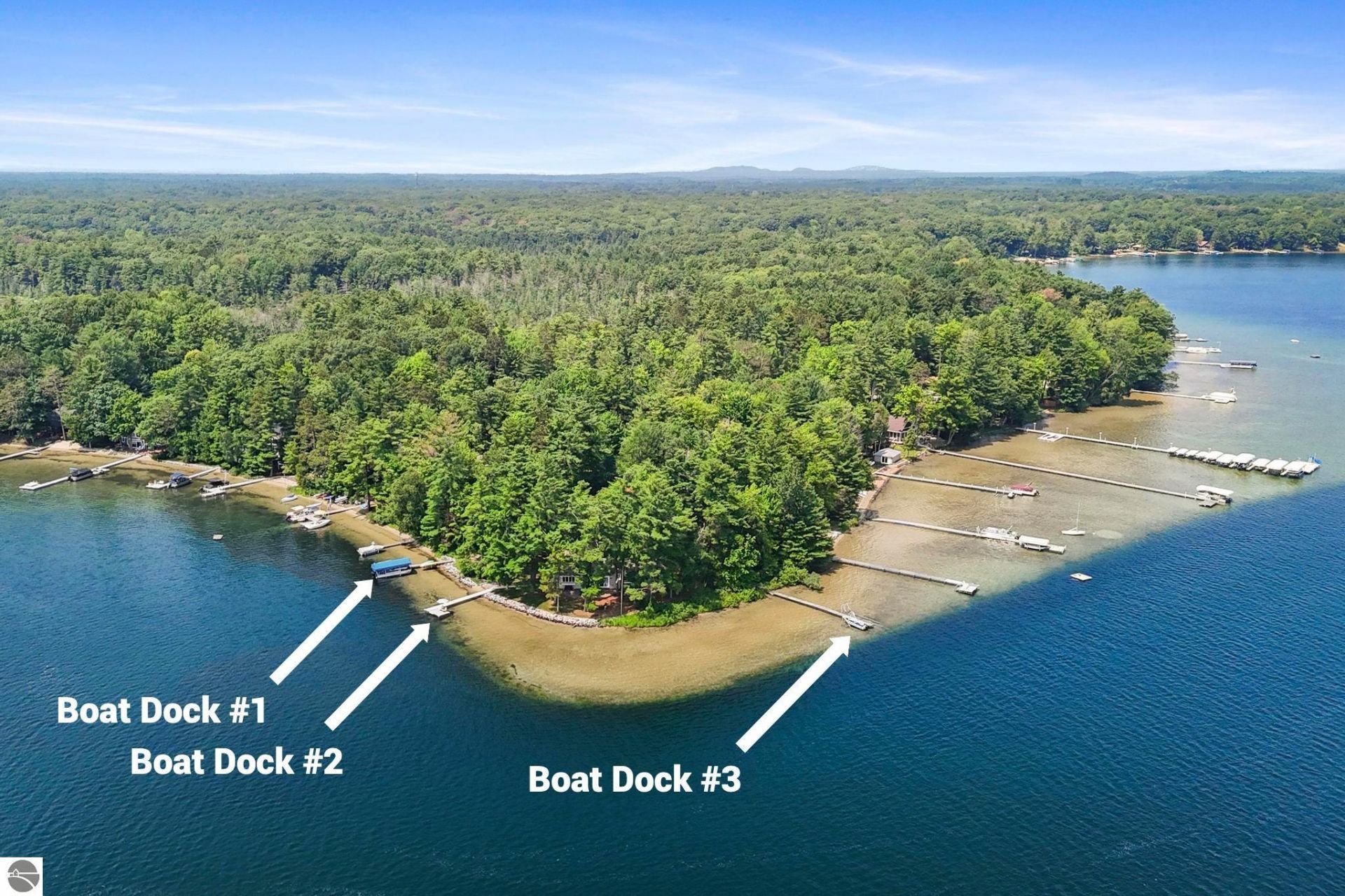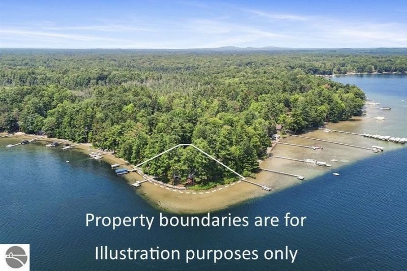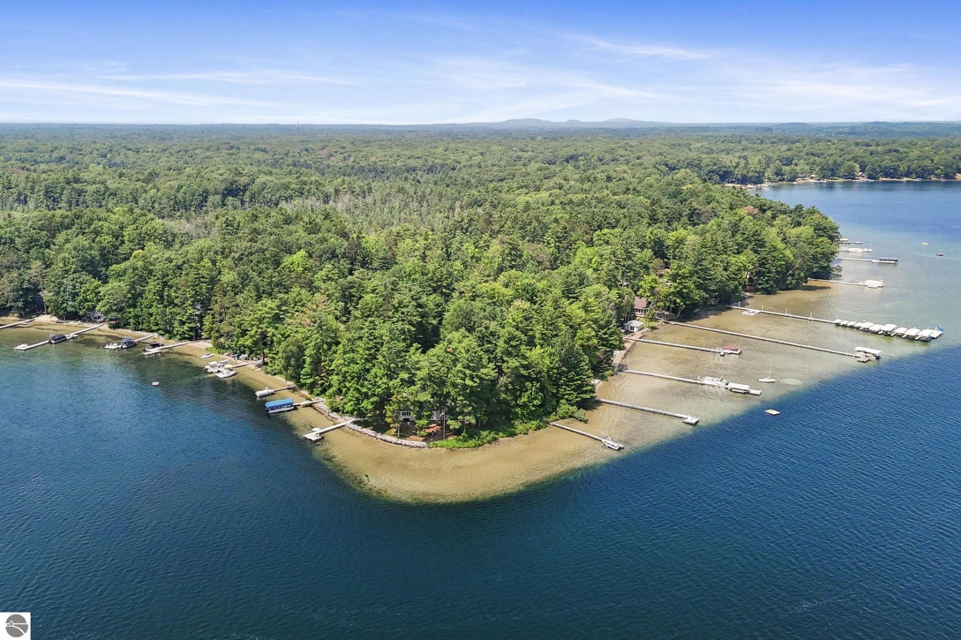 Welcome to The Point on Long Lake ??? one of the most rare and extraordinary waterfront properties in Northern Michigan. This one-of-a-kind property sits on a private point surrounded by water on three sides, offering an incredible 316 feet of private frontage, sandy shallows, and breathtaking panoramic lake views in every direction. From the moment you arrive, it???s clear this property is truly special. Tucked beneath mature, towering trees, the setting offers the perfect balance of privacy, shade, and natural beauty. Loons return each year to nest nearby, a gentle breeze rolls across the point, and the surrounding waters are known for excellent bass and walleye fishing, making this one of the most desirable locations on Long Lake. The home features 3 bedrooms and 2 bathrooms with a comfortable, timeless Up North feel. The vaulted living room is highlighted by a soaring wood-burning fireplace with stacked stone, and hardwood floors run throughout the main living area. The dining room is full of character with original pine walls and is wrapped in windows, bringing the outdoors in with beautiful water views from nearly every angle. The property also includes an attached 2-car garage, along with a detached boathouse garage perfect for storing boats, lake toys, and equipment. In addition to its immediate charm and livability, the property offers flexibility for the future, giving the next owner the option to further enhance or personalize the space over time if desired. Properties like this simply do not come available often. The Point on Long Lake is more than just a home ??? it???s a sanctuary, a lifestyle, and a once-in-a-generation opportunity to own what is truly one of the most unique and coveted properties on Long Lake.