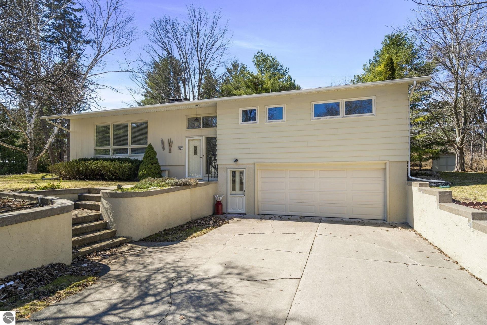 Discover timeless style and an unbeatable location in this meticulously maintained 3-bedroom, 2.5-bath mid-century modern home nestled at the coveted base of Old Mission Peninsula. Thoughtfully designed, the spacious open-concept living and dining area is filled with natural light from expansive windows and anchored by a cozy wood burning fireplace???perfect for both entertaining and quiet evenings at home. The retro-inspired kitchen has been lovingly preserved and offers abundant storage, a comfortable sitting area or charming breakfast nook, overlooking the wide, private backyard. The efficient primary suite provides a peaceful retreat with its own ensuite bath, while two additional bedrooms and a full bath offer plenty of space for family and guests. The lower level expands your living space with a generous family room featuring a second fireplace, half bath, and ample storage???ideal for recreation, hobbies, or relaxing. Step outside and enjoy nearby Clancy Park just moments away; perfect for pets and play. This prime location places you close to Eastern Elementary, Central High School, Northwestern Michigan College, Bryant Park, East Bay Park, and just two miles from downtown Traverse City. Enjoy a quiet, established neighborhood with all the amenities, dining, beaches, and recreation that Traverse City is known for right at your fingertips.