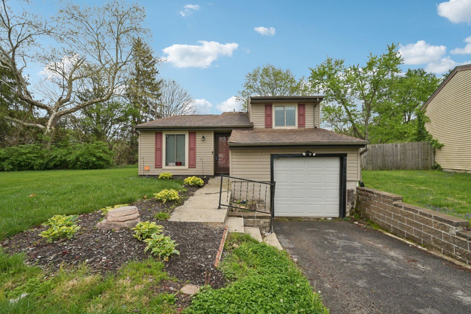 Welcome home to this beautifully maintained 3-bedroom, 1.5-bath residence with a single-car attached garage, tucked away on a desirable cul-de-sac lot. Enjoy a spacious backyard that backs directly to Independence Park, offering scenic views and plenty of room to relax, play, or entertain. Inside, the main living area features soaring vaulted ceilings that create an open, airy feel filled with natural light. The layout flows comfortably into the kitchen, where you'll find generous cabinet space and easy access to the backyard deck???perfect for morning coffee or hosting gatherings while overlooking the expansive yard and park setting. Upstairs, all three bedrooms are thoughtfully positioned near the full bath, providing a practical and functional layout. The finished lower level adds valuable additional living space and includes a convenient half bath???ideal for a recreation room, media space, home office, or workout area. With its inviting floor plan, finished basement, attached garage, and unbeatable backyard views, this home offers comfort, versatility, and a fantastic location all in one.