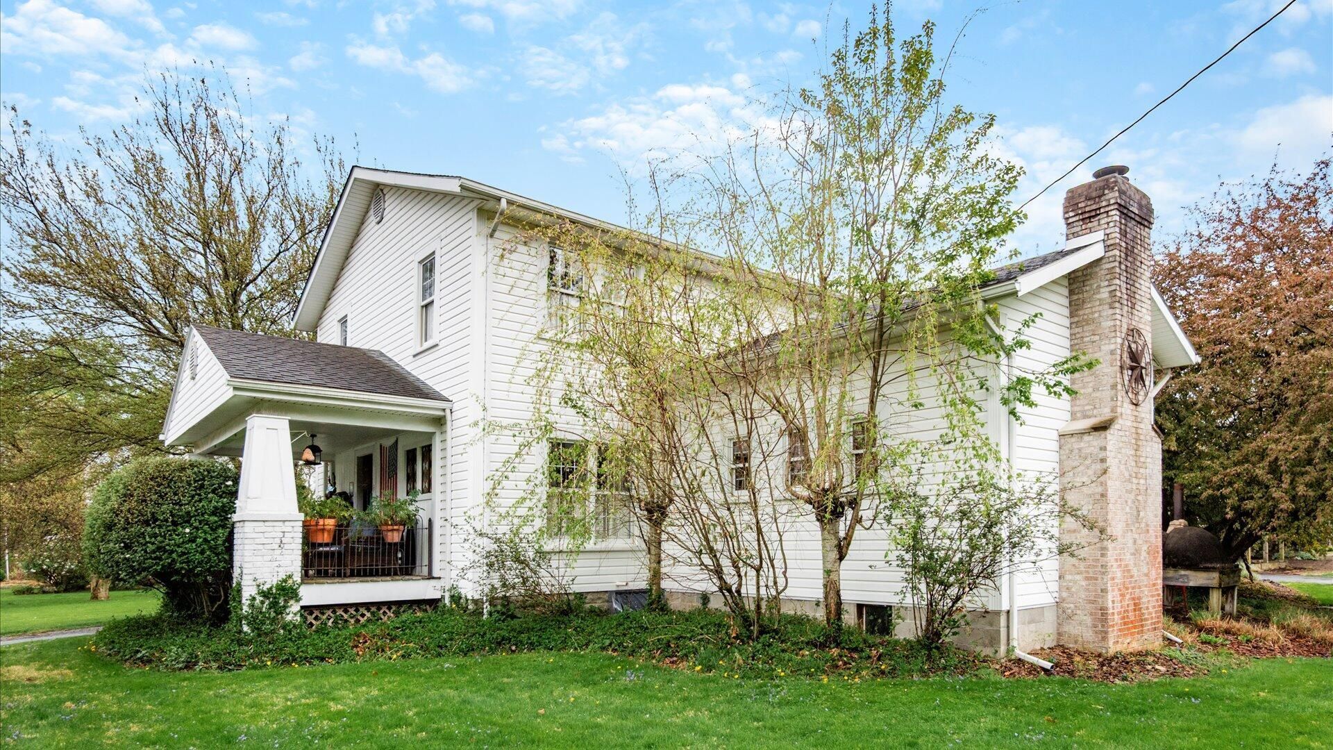 Charming and walkable to Granville Village, this historic 1920s Craftsman sits on ~1.5 scenic acres near Bryn Du Mansion & bike trail. The property features multiple outbuildings including a garage/barn with gardener's room/greenhouse, loft & deck overlooking the yard, plus a carriage house with rustic living space, vaulted ceilings, loft, wood-burning stove, and imported Italian French doors. A fenced pasture with goat/chicken house and a separate winter chicken coop offer hobby farm potential. Rich in character, the home showcases original hardwood floors, arched doorways, crown molding, stained glass windows, antique lighting, and three fireplaces throughout the main level. Thoughtful additions include a dining room with fireplace and French doors to the patio, and a large family room with fireplace, half bath, and open staircase to a finished lower level. The kitchen features stainless steel appliances, built-in banquet seating, and open flow to living spaces. With 4 bedrooms and 3.5 baths, including a private main-level suite, this home blends historic charm with everyday comfort.