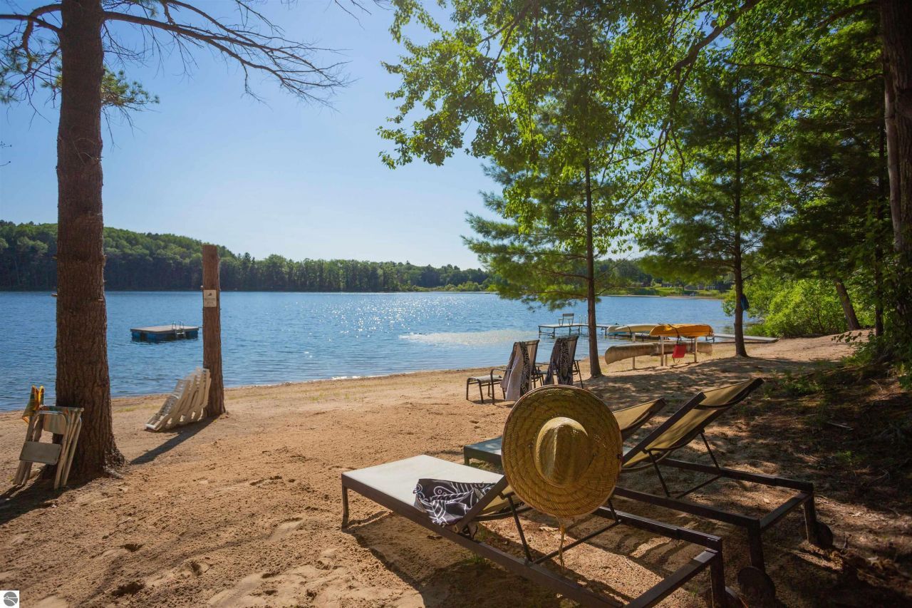 Exceptional opportunity to own a modern bed & breakfast on more than 5.5 private wooded acres with 402 feet of water frontage on Lake View, a peaceful no-wake lake. This thoughtfully designed retreat blends natural beauty with contemporary Scandinavian style. Located just one minute from Lake Ann and 15 minutes from Lake Michigan and Sleeping Bear Dunes National Lakeshore, the property offers convenient access to beaches, trails, wineries, breweries, and year-round recreation while maintaining exceptional privacy. The B&B features four identical studio-style guest suites with in-floor heat and high-end finishes, centered around a welcoming lounge where guests gather and relax. A separate guest parking area provides ample parking and easy access. The wooded grounds offer walking trails, abundant wildlife, and expansive private shoreline ideal for kayaking, paddleboarding, and lakeside enjoyment. A charming beach cabana near the water provides additional sleeping space for up to four. The attached owner???s residence includes a main-level kitchen, living room, primary bedroom, bathroom, and heated 30x24 garage with workbench, dog wash sink, and an epoxy-sealed floor. The finished lower level offers two flex rooms, a bathroom, and a spacious living area with walkout French doors to a patio. It is also plumbed for a future kitchen, offering potential for a private guest suite or multi-generational living. The property is properly split for potential future development, and Almira Township allows accessory dwellings, providing long-term flexibility and upside. Whether continuing as a successful bed & breakfast, creating a private family compound, or exploring expansion opportunities, this unique lakefront property offers exceptional versatility in a prime Northern Michigan setting. Click the virtual tour link for an incredibly realistic view of the interior.