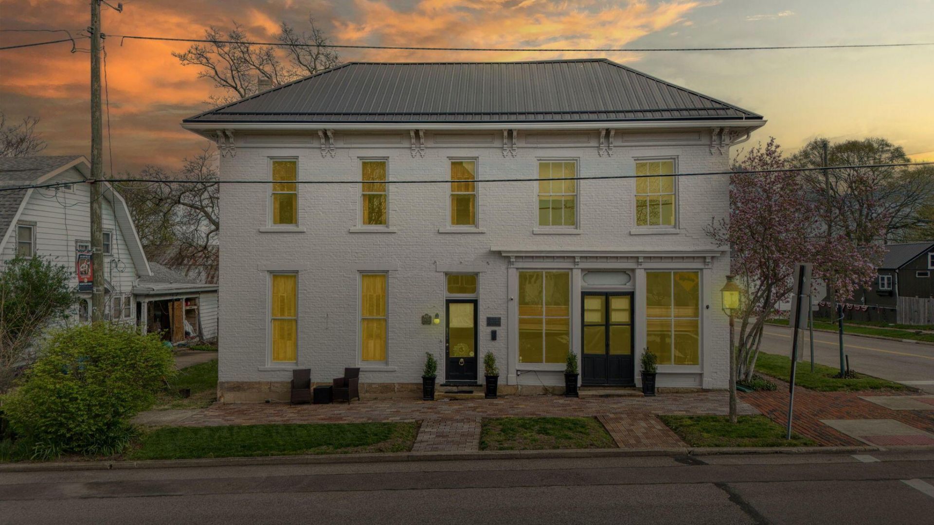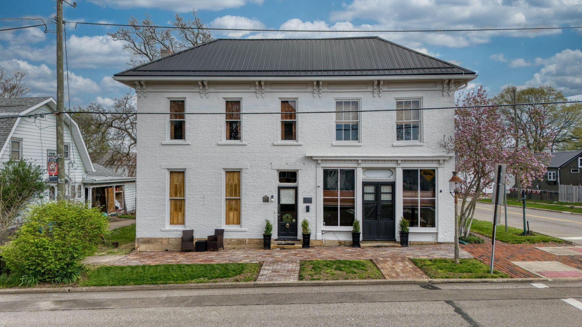One of a kind! This 1900's home with 6,460 sq. ft. has been updated and thoughtfully laid out using the massive space. 6+ possible bedrooms, 4 & 1/2 baths. 4 a/c units & 4 furnaces. 2 kitchens, 3 laundry hookups. Main floor boasts open concept kitchen with newer insulated windows, dining & living space. Luxury laminate flooring with exposed brick & shiplap accent walls. A full bath, laundry & walk in utility room off kitchen. Wood shutters, original oak trim with approx. 1' baseboard trim in entry hallway, transit windows & a walnut/oak tread curved staircase adds to its beauty. Very unique long room on main floor used as living office space with new floor joists., gas wall heater & Wainscoting 3/4''thick. Formally was a pizza shop. Walk upstairs to the expansive space to find a bedroom with brick accent wall, full, open ceiling bath & 2 new windows. Several more rooms to be use for potential bedrooms, living space, etc. possibilities are endless. Several gas wall heaters, a mini split in one bedroom, & washer dryer hookup areas. Current craft room w/attic access. Newer paint inside & outside. Newer metal Roof & gutters. Wine Cellar with replaced beams. Screened in porch, 3 tier deck with gazebo. Fenced yard with access to separate 572 sq. ft.,1 room house w/window air, elec., half bath & heat. Can access from street. Originally was used as a pizza shop. Outside Galley way between main home and little house. Very long deck running along house on market street. Corner lot. Multiple parking along Main St. & Market St., behind house & off-street concrete pad. Brick sidewalks. Right off St. Rt. 22 & St. RT. 664. Short commute to Buckeye Lake, Somerset, Bremen & Lancaster. Zoned Commercial, this home is also placed on the National Register of Historic Places. So much opportunity here. Use your imagination. Don't miss your opportunity to own this unique property. Must see! Don't delay, schedule your showing today!