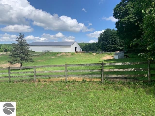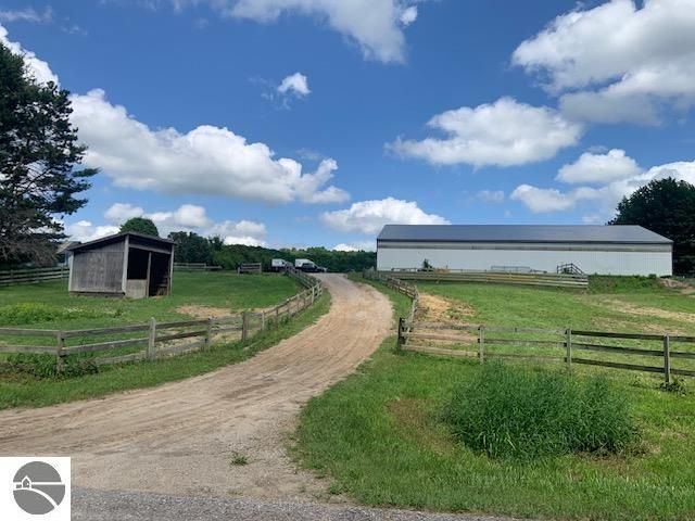 EQUESTRIAN FACILITY on a beautiful partially wooded 10 acre parcel near Bellaire, Mi. and Torch Lake. Only a 40 minute drive to Traverse City Horse Shows @ Flintfields Horse Park in Williamsburg, Mi. Includes a 120'x92' x 14' high pole barn with a 120'x72' indoor riding arena, 8 adjustable horse stalls, and a heated tack room with a kitchen area and ½ bathroom. There are numerous paddocks and run in sheds on the secluded yet easily accessible property. A new pole barn truss system and roof were installed in 2017. Measurements and dates are approximate.
