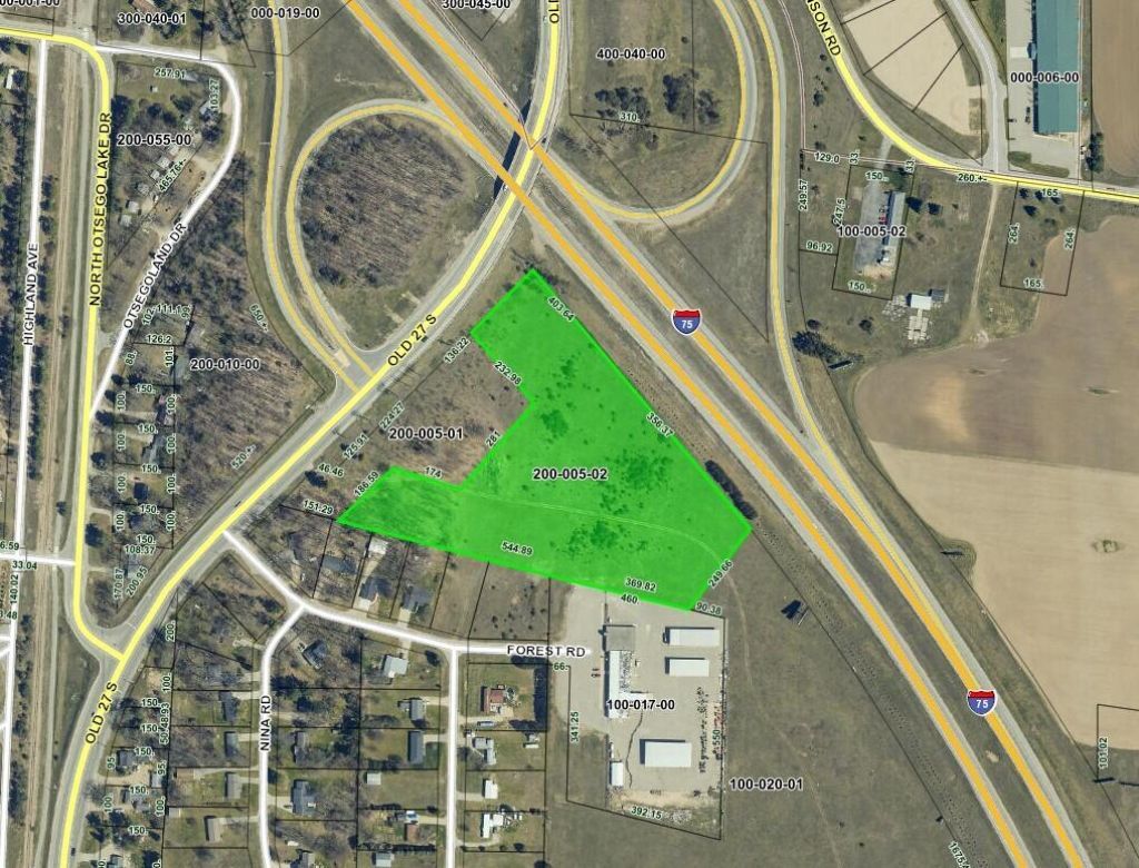 **Prime Commercial Land Opportunity** Discover the potential of this expansive 8.59-acre parcel boasting an impressive 830 feet of frontage along I-75, located just south of the south Gaylord exit (exit 279) and neighboring the new Dollar General. Zoned B-2, this site offers endless possibilities for your commercial vision to flourish.
